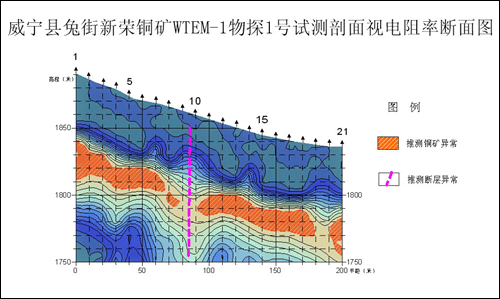 WTEM-1在貴州的銅礦探測(cè)實(shí)測(cè)剖面